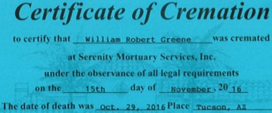 My father bought his final residence in 2005 for $399,000, as a retirement investment. A friend and coworker who contributed $25,000 toward its down payment will never recover that money. This friend labors every day under the punishing Arizona sun with a stiffened neck that barely allows him to turn his head. And as for my surviving family and me, we have ashes, in a rigid plastic box. Mementos from my childhood, along with photographs of my dad and mom and my brother and me that were in my father’s possession were unceremoniously dumped in a landfill after the bank foreclosed on his home.